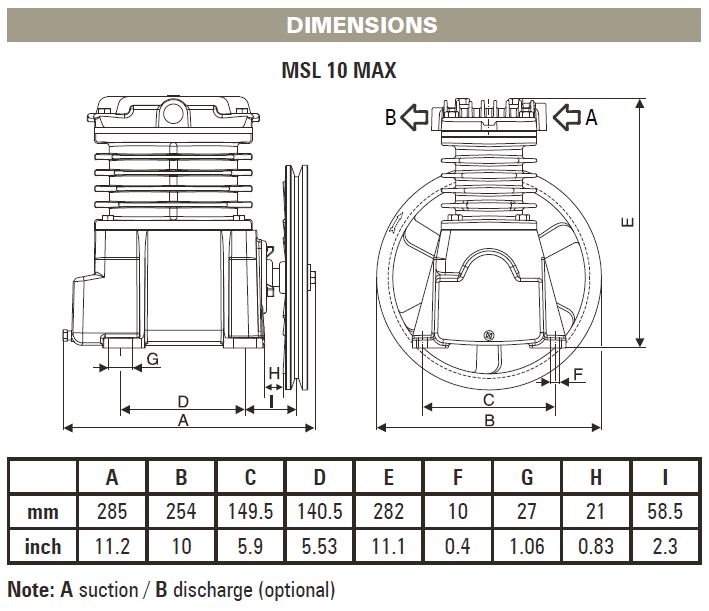 Schulz MSL 10 MAX 2 HP Single Stage Cast Iron Air Compressor Pump